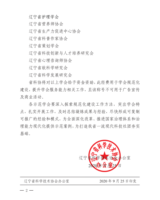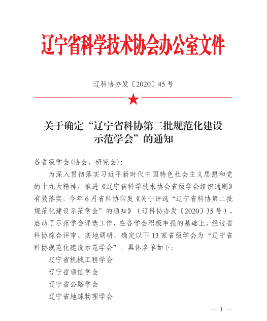 关于确定“辽宁省科协第二批规范化建设示范学会”的通知