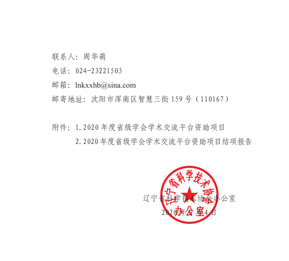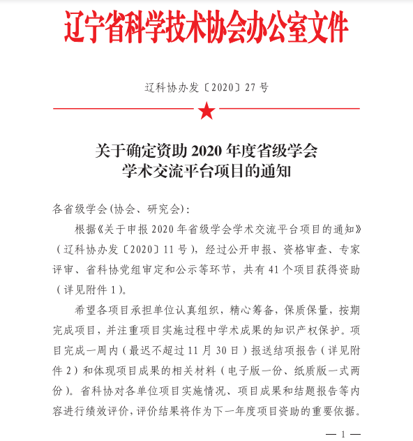 关于确定资助2020年度少级学会学术交流平台项目的通知
