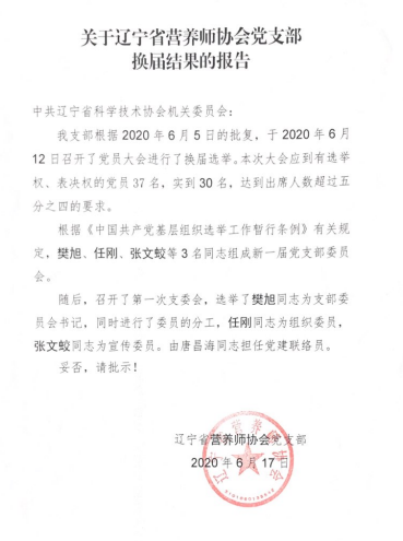 关于同意辽宁省营养师协会召开第三届会员大会的批复