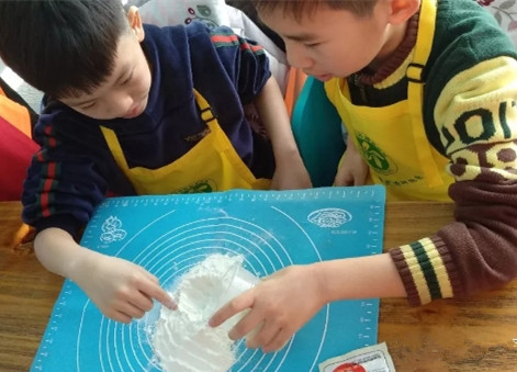 【美味厨房】小朋友们用发好的彩色面做各种小动物。