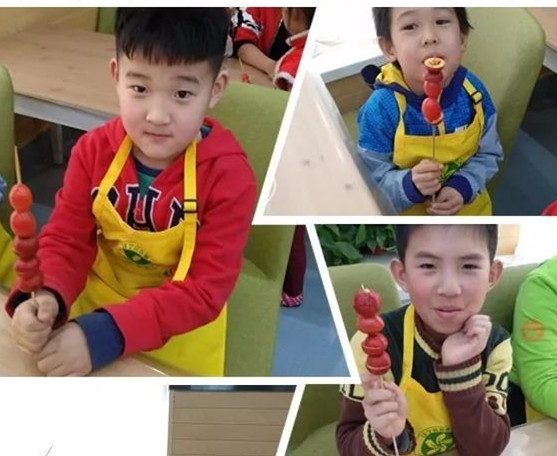 山楂能增强食欲,改善睡眠,保持骨骼和血液中钙的恒定,所含的黄酮类化合物和维生素C、胡萝卜素等物质能阻断并减少自由基的生成,能增强机体的免疫力。小朋友们学习了知识之后动手做起来。