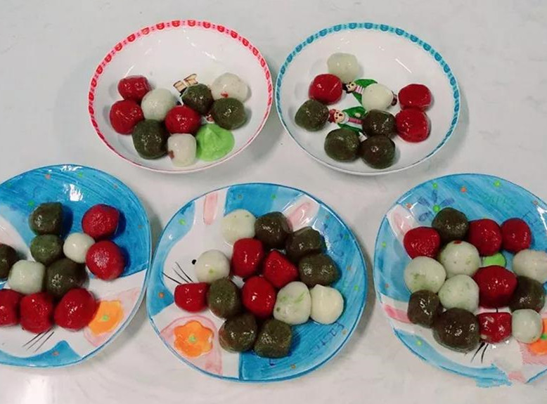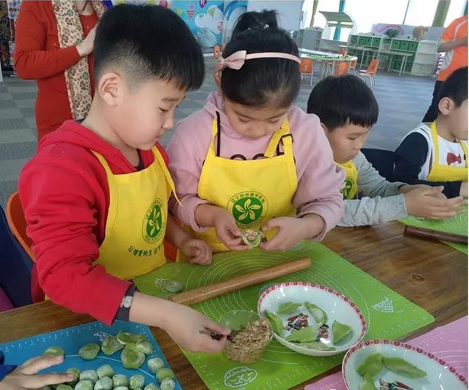 【美味厨房】由营养老师带小朋友们包翡翠饺子、做五彩汤圆,宝贝们很认真的学习。