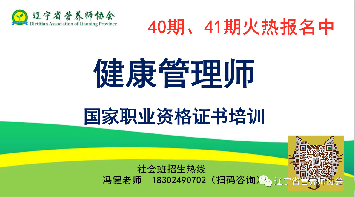 辽宁省营养师协会【健康管理师】第40期、41期热招中,愿意加入健康行业,共创未来的同仁赶紧行动吧!