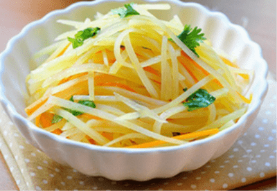 (1)规定菜肴作品为“炒青椒土豆丝”,选手使用自备的带皮土豆6个(1000 克),青椒 4个(200 克),以炒法完成菜品的制作。