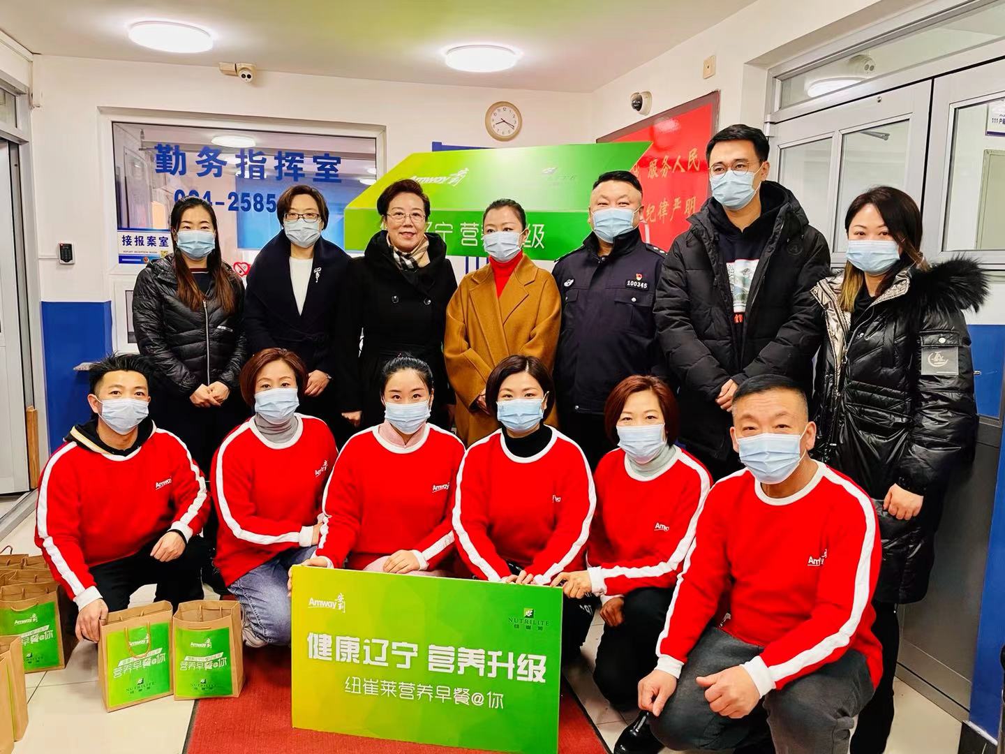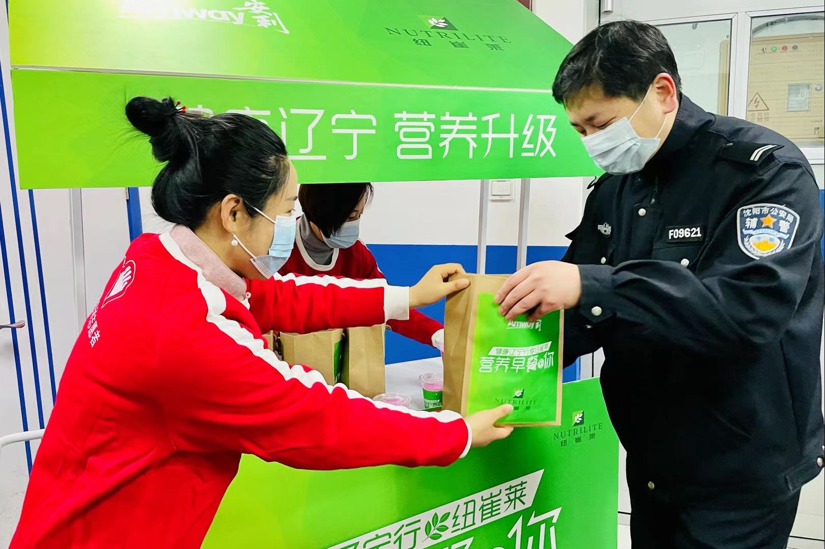 “健康辽宁行” 项目启动恰逢3月5日雷锋日来临前夕,辽宁省营养师协会、安利(中国)日用品有限公司辽宁分公司携手共青团铁西区委员会为沈阳市公安局铁西分局贵和派出所一线民警送出百余份健康营养早餐。辽宁省营养协会会长张帆、沈阳生活广播副总监刘玉蕾、安利(中国)日用品有限公司公共事务经理张丽等领导及多名膳食营养师志愿者出席了活动。