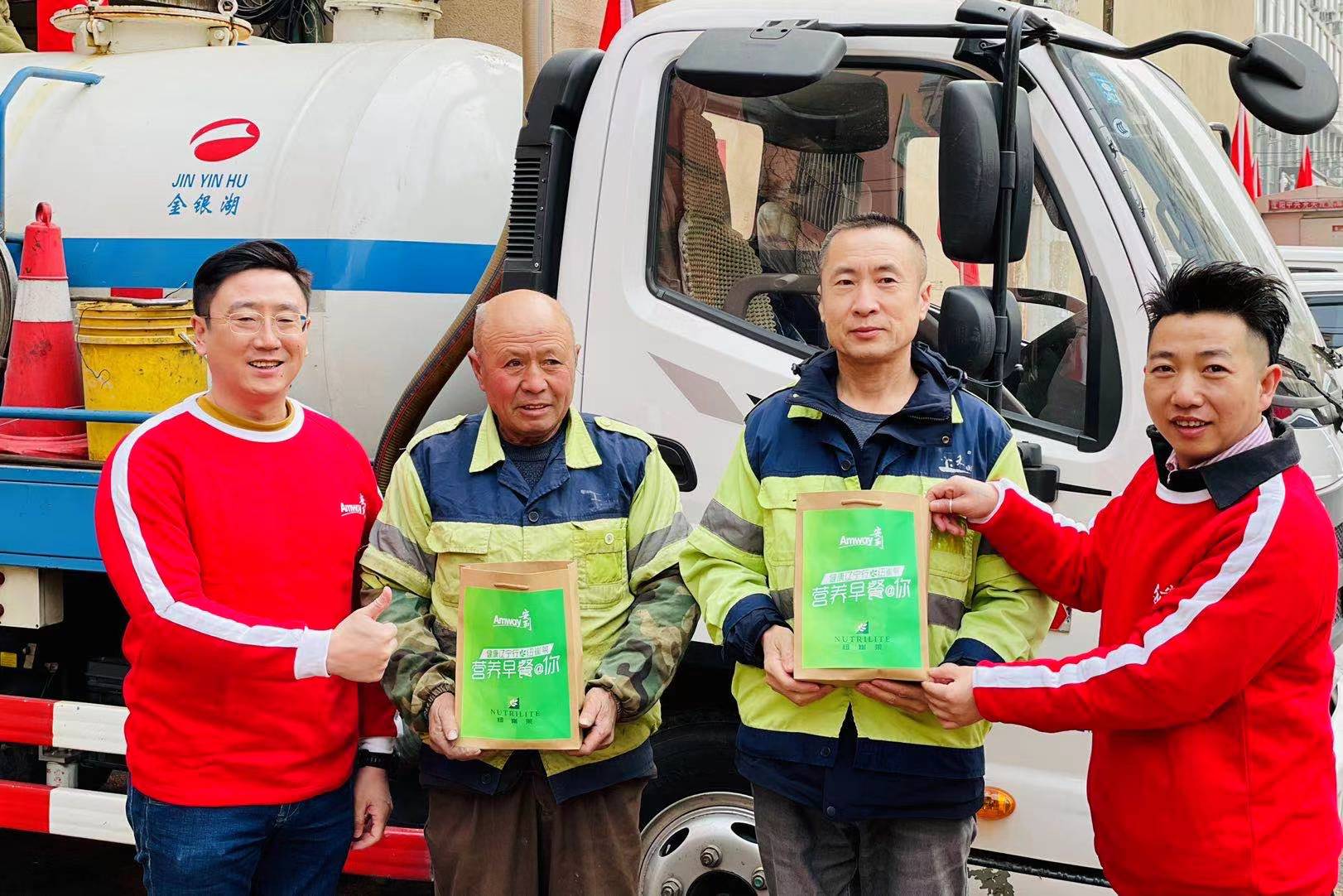 安利志愿者、膳食营养师刘敬说:“防疫一线的民警、环卫工人们工作压力大,对他们来说营养充足的早餐非常重要,但受工作时间限制,他们的早餐大多数不达标,早餐吃不好,会影响一整天的工作效率,也会增加患慢性疾病的风险。这次我们用早餐,唤醒城市的一线防疫者健康的一天,用爱心公益奉献践行新时代雷锋精神。”
