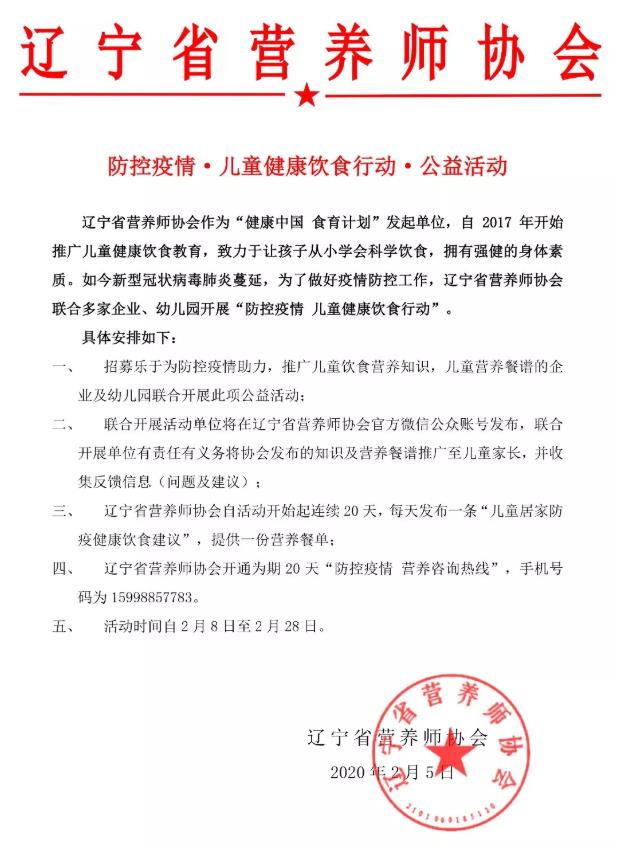 为抗击新冠病毒,辽宁省营养师协会编写了《防控新型冠状病毒肺炎儿童健康饮食建议》、《儿童防护新型冠状病毒的居家指南》并发起【防控疫情儿童健康饮食计划】公益活动。